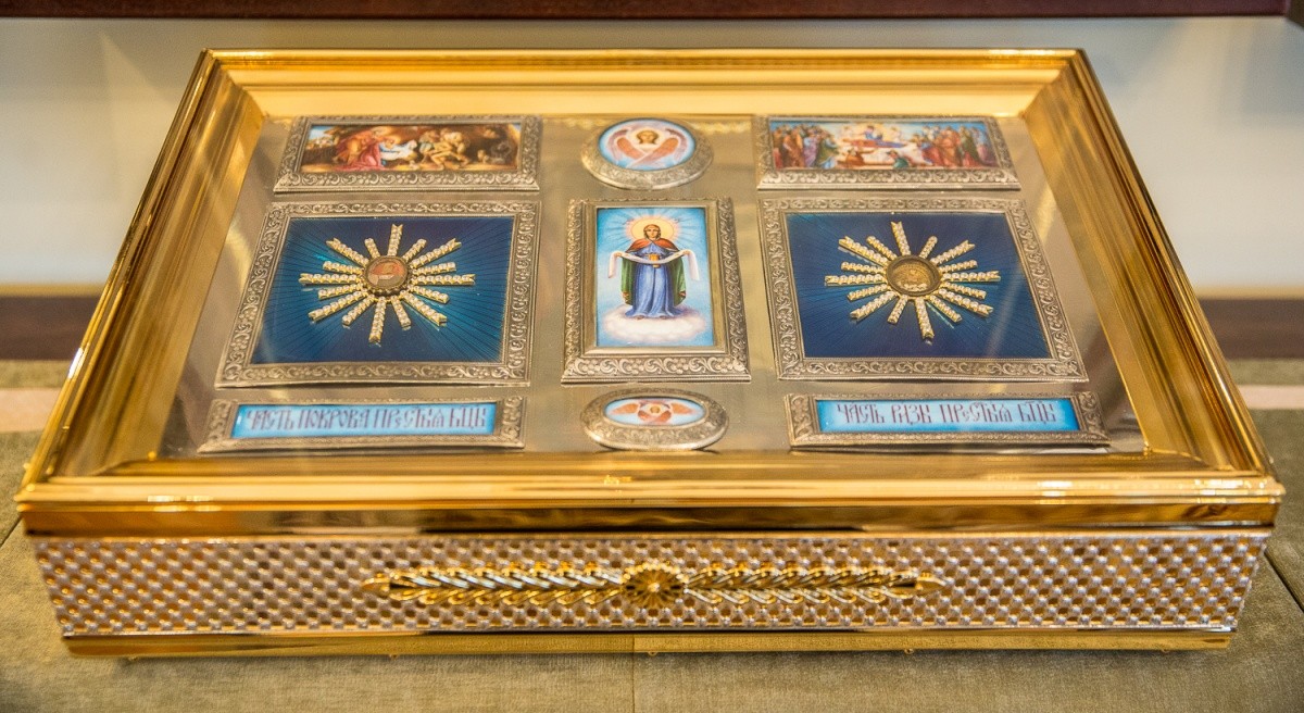 Специальный ковчег для доставки святынь в Болгарию был изготовлен в мастерских художественно-производственного предприятия Русской Православной Церкви «Софрино». Основой ковчега стала серебряная пластина с частицами одеяний Богородицы, украшенная иконами по эмали с изображениями событий из жизни Пречистой Девы, с которыми, по Преданию, связаны святыни, – Рождества Христова и Успения Богородицы.