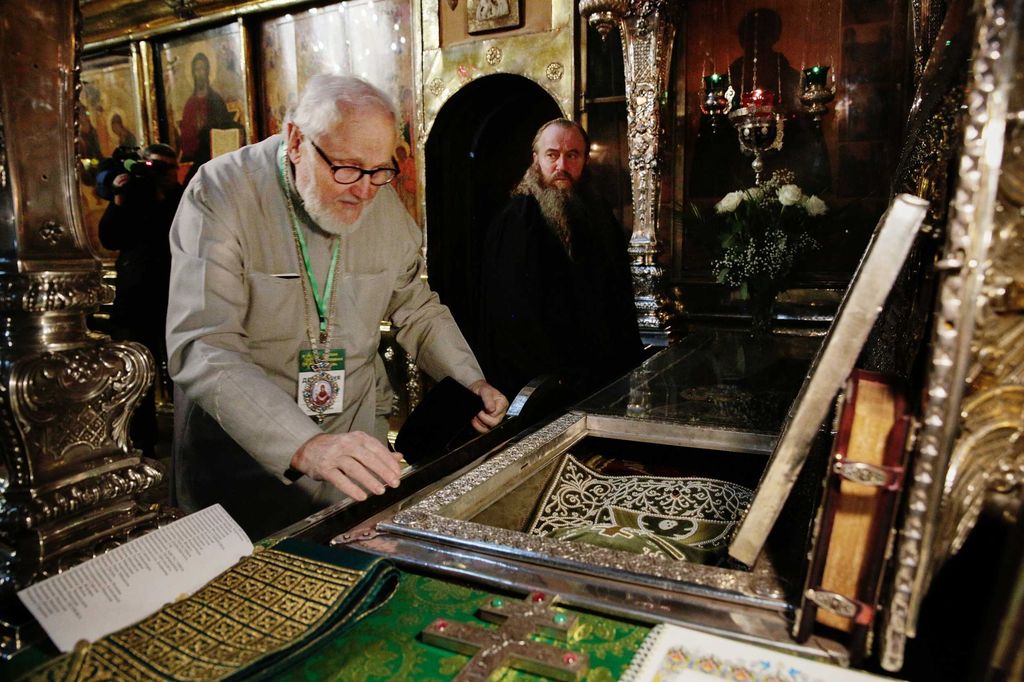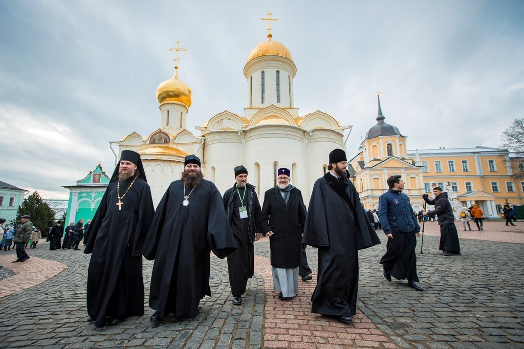 В Троице-Сергиевой лавре главу и членов делегации Архиепископии сопровождали экзарх Западной Европы, руководитель Управления Московской Патриархии по зарубежным учреждениям митрополит Корсунский и Западноевропейский Антоний, заместитель управляющего делами Московской Патриархии епископ Зеленоградский Савва, заместитель председателя Отдела внешних церковных связей Московского Патриархата протоиерей Николай Балашов.