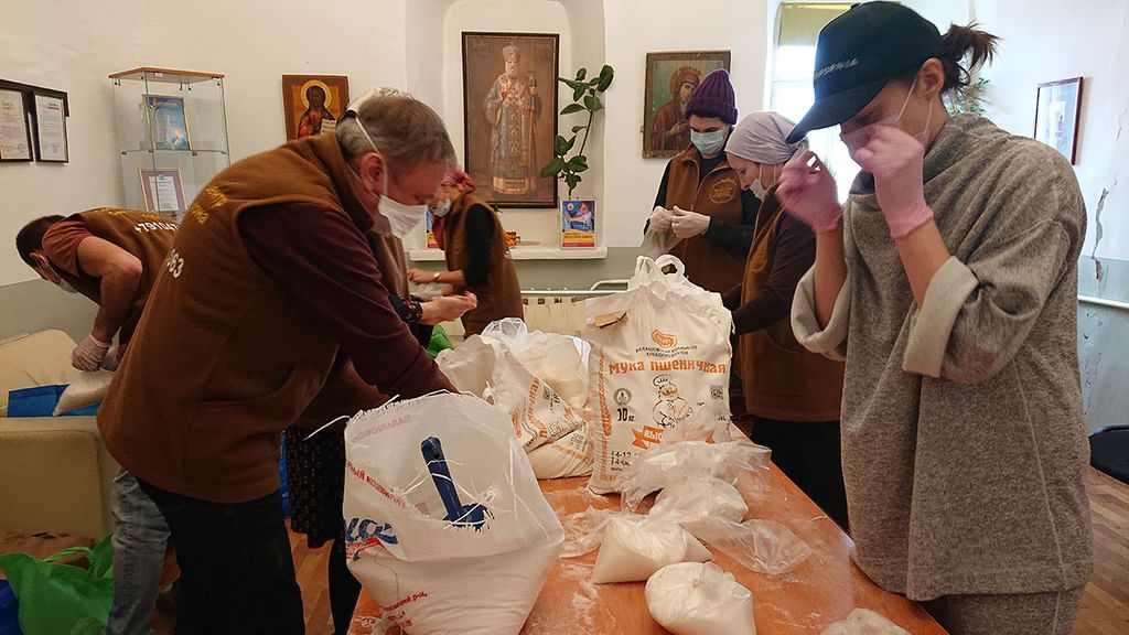 Во главе с иеромонахом Космой (Афансьевым) добровольцы сформировали наборы и для тех людей, кто оказался самоизолированным. Всего для данного мероприятия были пожертвованы 1 тонна сахарного песка и 1,5 тонны муки.