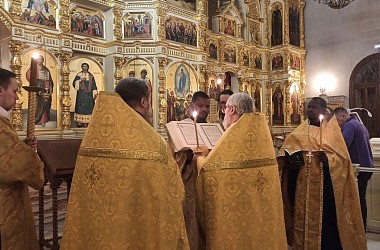 За это время клирики совершали уставные богослужения под руководством иеромонаха Дионисия (Локтаева). Богослужение велось на двух языках – церковно-славянском и английском.