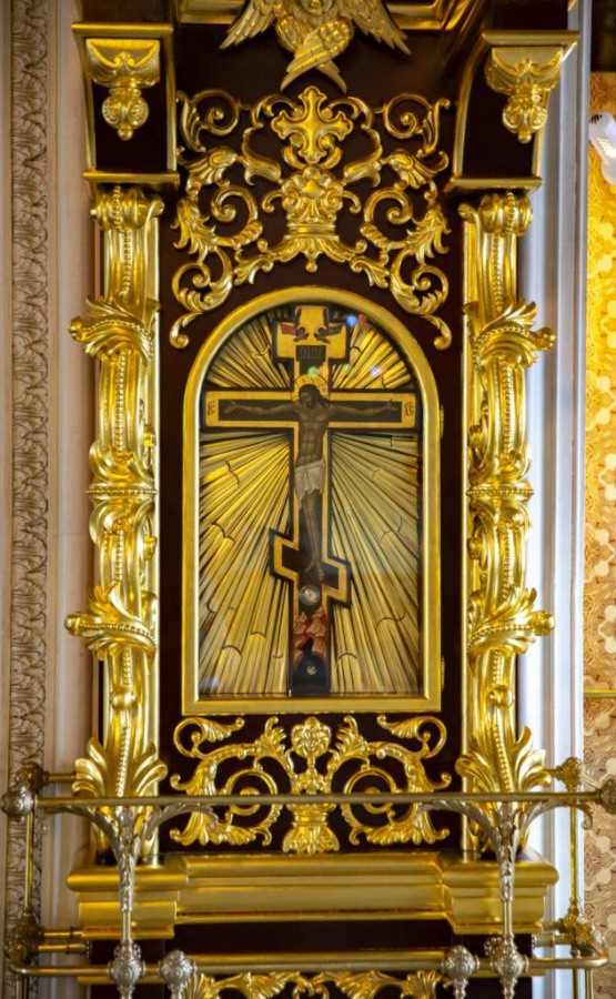 Одни из самых почитаемых святынь Высоко-Петровского ставропигиального мужского монастыря Москвы – живописное Распятие с частью Животворящего древа Креста Господня и Влахернскую икону Божией Матери перенесли из алтаря храма преподобного Сергия Радонежского в его среднюю часть.