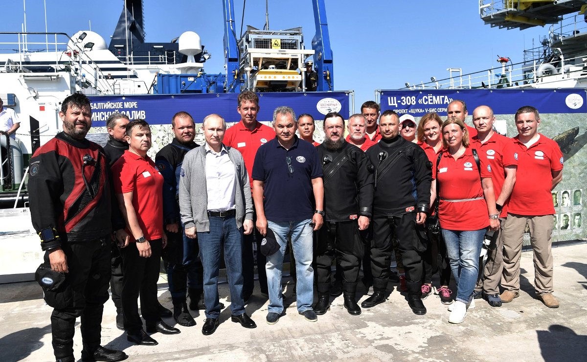 Президент Российской Федерации Владимир Путин совершил погружение в батискафе на дно Финского залива. Погружение длилось 30 минут, после чего глава государства поделился впечатлениями с журналистами и пообщался с участниками экспедиции. Президент поблагодарил участников проекта «Поклон кораблям Великой Победы» – тех, кто занимается поиском затонувших подлодок, а также водолазов, которые работали во время погружения и непосредственно занимались установкой памятной таблички на корпусе судна. «Люди, которые здесь работают и занимаются этим делом, уже идентифицировали, по-моему, 17 объектов: 16 и одну лодку еще Первой мировой войны и несколько надводных кораблей. Конечно, я уже сказал: одно дело, когда люди числятся пропавшими без вести, а другое дело, когда мы знаем их имена, и это очень важно», – подчеркнул Президент.