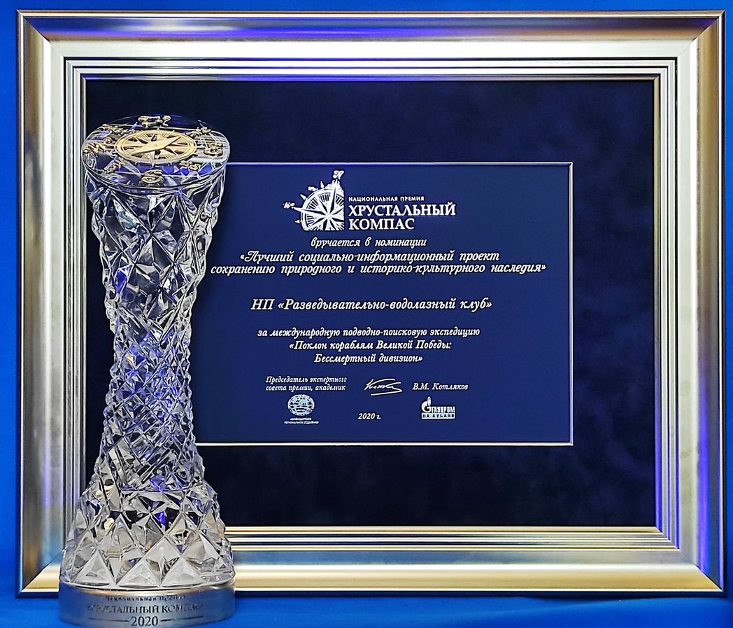 Премия получена за международную подводно-поисковую экспедицию «Поклон кораблям Великой Победы. Бессмертный дивизион».