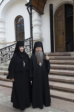 По окончании Литургии и благодарственного молебна Преосвященнейший Алексий передал настоятельнице обители игумении Викторине поздравление Святейшего Патриарха Московского и всея Руси Кирилла по случаю 65-летия со дня рождения: