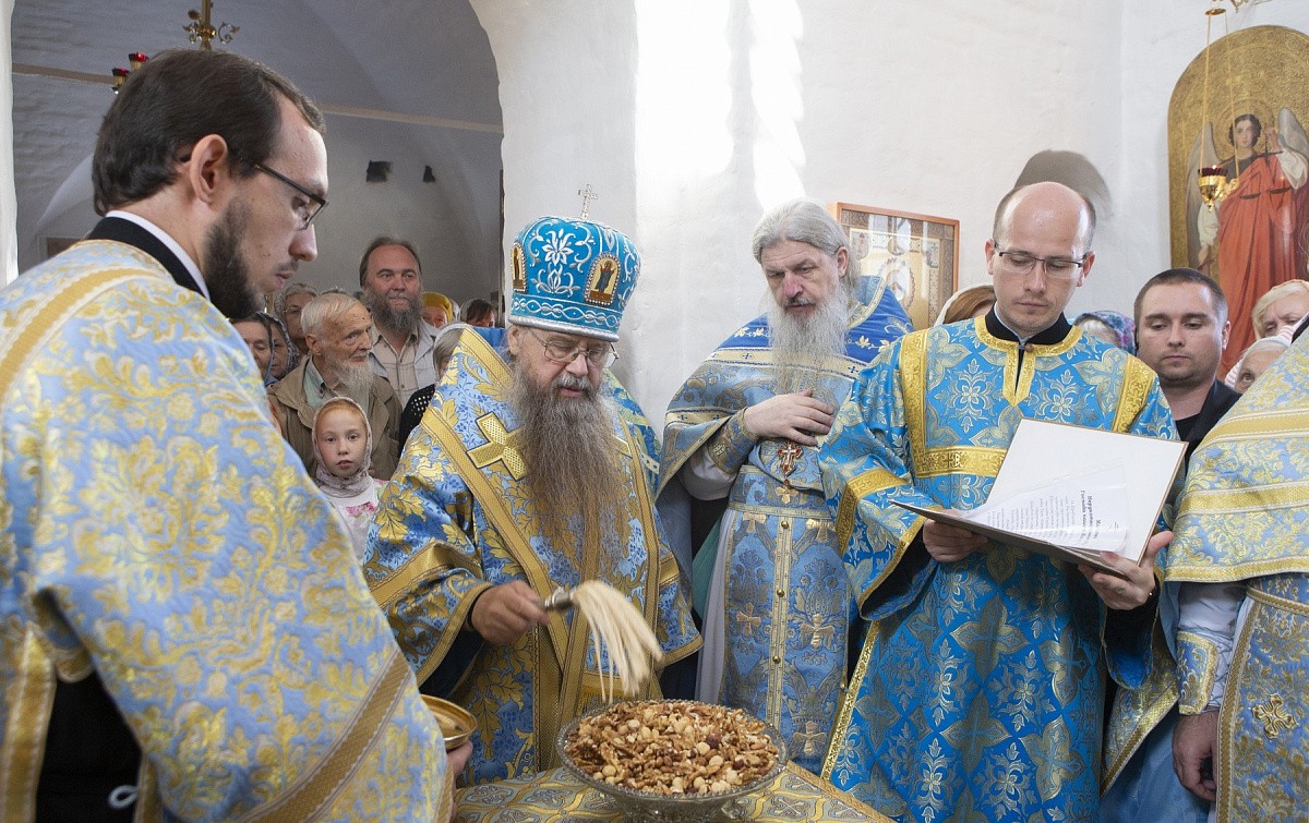 Затем владыка Алексий совершил освящение орехов, а также ореховых деревьев на территории Зачатьевского монастыря, посаженных и выращенных сестрами.