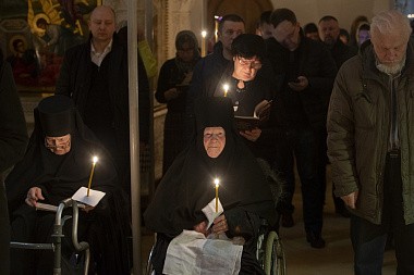 За богослужением молились заместитель председателя Синодального отдела по монастырям и монашеству, настоятельница Зачатьевского монастыря игумения Иулиания (Каледа), насельницы обители и многочисленные богомольцы и паломники, собравшиеся под своды соборного храма Рождества Пресвятой Богородицы ради сугубого покаянного моления, совершаемого в первые четыре дня благодатного Великого поста.