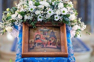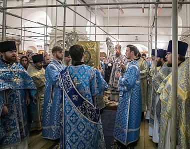 Накануне в соборе состоялось праздничное всенощное бдение с литией, крестным ходом и славословием. В сам день двунадесятого праздника Божественную литургию возглавил Преосвященный епископ Воскресенский Дионисий, викарий Святейшего Патриарха Московского и всея Руси, в сослужении клириков обители. По завершении Литургии владыка Динисий обратился к пастве с архипастырским словом: