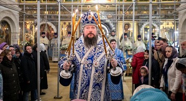«Дорогая матушка игумения Иулиания, честные сестры этой святой обители, дорогие братья и сестры, позвольте всем вам передать благословение Святейшего Патриарха Московского и всея Руси Кирилла, всегда имевшего попечение об этой священной, древней и одновременно новой обители. Сегодня, как свидетельствует об этом Церковь – великая радость – день Рождества, день рождения Пречистой и Преблагословенной славной Владычицы нашей Богородицы и Приснодевы Марии. Всемирная радость! Но действительно ли эти радостные песнопения и благолепно украшенные храмы способны обрадовать сердце каждого человека? Увы, иногда в своем-то сердце в самые торжественные и трогательные минуты не обретаешь радости. Поэтому для того, чтобы войти в тихую и светлую радость этого праздника, нужно понять, а чему мы радуемся в этот день? Тому, что начинается новый церковный год? Тому, что великий праздник? Тому, что мы все здесь собрались в храме? Все это является поводом для возможной радости, но само по себе обрадовать нас не может. Чему же радуются люди в этот день?