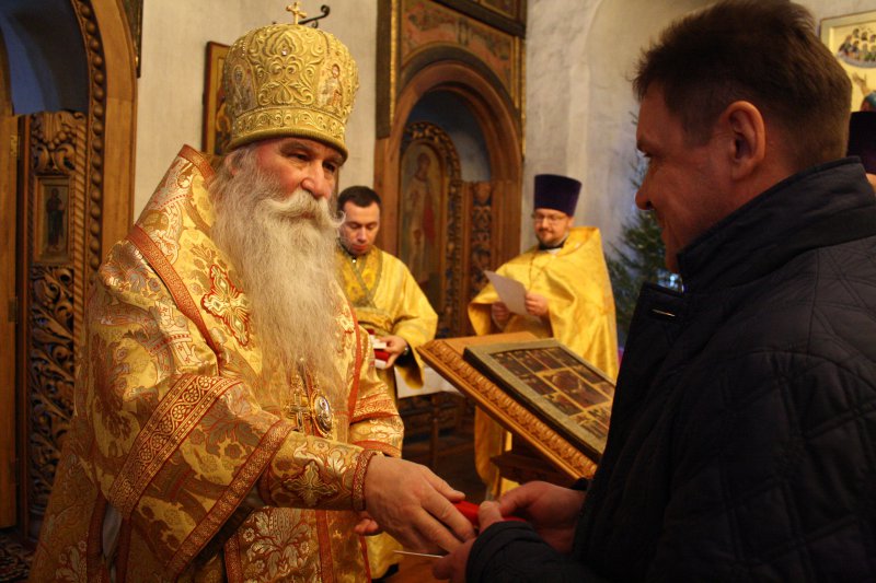 По окончании богослужения Его Преосвященство вручил юбилейные Патриаршие медали «В память 100-летия восстановления Патриаршества в Русской Православной Церкви» главе Управы района Ясенево города Москвы А.Ю. Толчееву, генеральному директору Группы компаний «Интерстройтехнологии» А.В. Луговому, секретарю Параскево-Пятницкого благочиния И.А. Черемину.