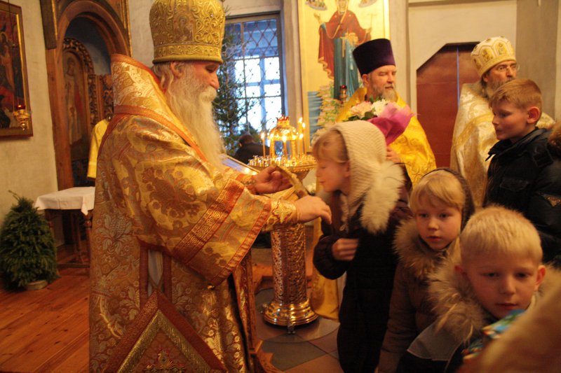 После заамвонной молитвы было совершено славление празднику Рождества Христова.