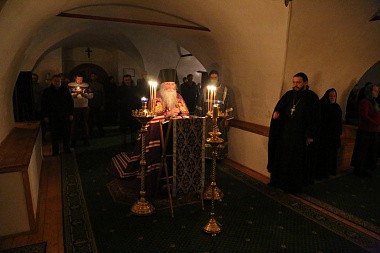 Затем владыка Феофилакт возглавил великое повечерие с чтением Великого покаянного канона преподобного Андрея Критского.