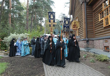 По окончании Литургии Преосвященнейший Владыка и все молящиеся прошли торжественным крестным ходом вокруг храма и сугубо помолились у могил насельниц монастыря, нашедших последний приют на земле подворья.