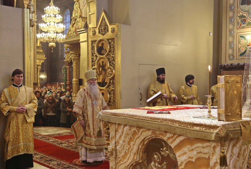 Его Преосвященству сослужили наместник Николо-Угрешского ставропигиального мужского монастыря игумен Варфоломей (Петров) с братией обители в священном сане.