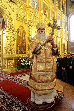 Владыка Феофилакт передал всем собравшимся благословение Святейшего Патриарха Московского и всея Руси Кирилла, поздравил всех присутствующих с престольным праздником и поблагодарил наместника и братию за совместную молитву.