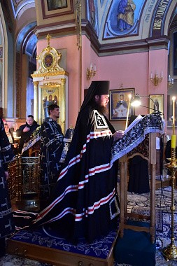 Епископу Фоме сослужили клирики Покровского монастыря.