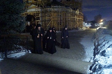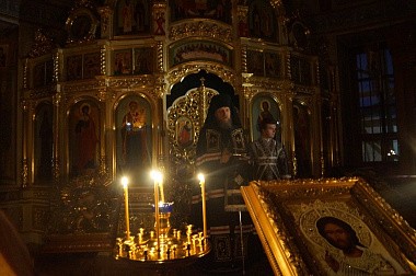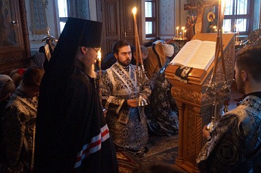 Великое повечерие было совершено в Троицком соборе обители.