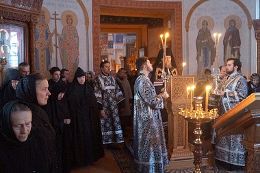 Его Преосвященству сослужили клирики монастыря.