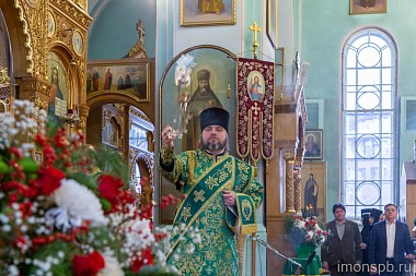 За Литургией молились настоятельница монастыря игумения Людмила (Волошина) с сестрами, настоятельница Иоанно-Предтеченского ставропигиального женского монастыря г. Москвы игумения Елисавета (Никишкина), начальник Отдела по связям с религиозными объединениями администрации г. Санкт-Петербурга В.Г. Иванов, глава Петроградского района В.В. Омельницкий, заместитель главы района А.А. Цибиногин, гости и прихожане обители.