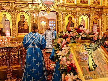 Всенощное бдение накануне и Божественную литургию в день престольного праздника во Введенском соборе возглавил наместник монастыря епископ Можайский Леонид в сослужении братии обители.