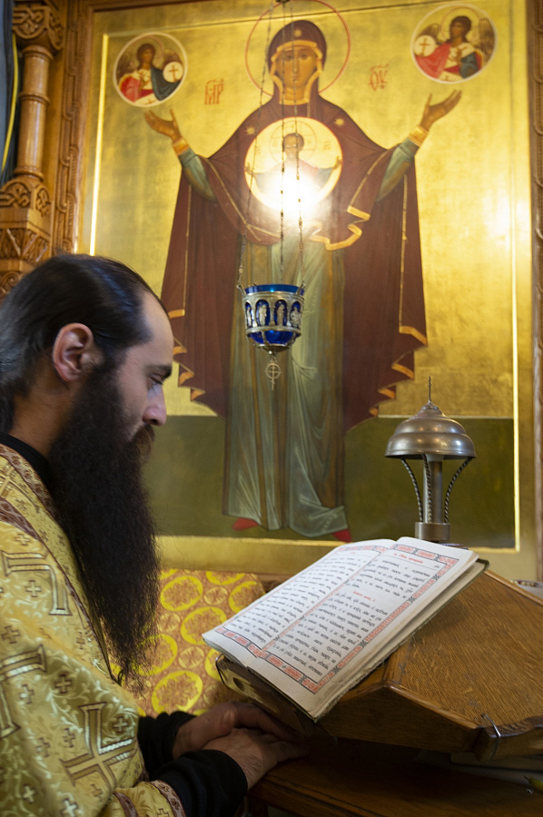Церковные песнопения исполнил мужской хор подворья Оптиной пустыни в Москве под управлением Родиона Шкреда.