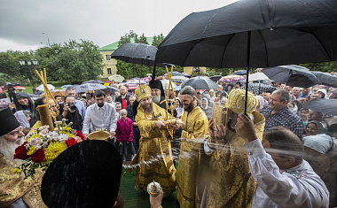 По окончании богослужения епископ Леонид, духовенство и миряне совершили крестный ход вокруг храма.