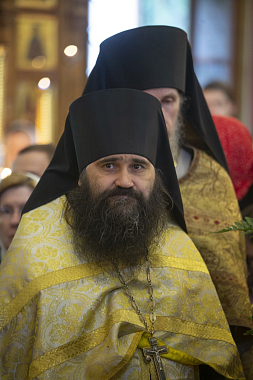 Его Преосвященству сослужили: настоятель Оптинского подворья в Москве архимандрит Мелхиседек (Артюхин), пресс-секретарь Синодального отдела по монастырям и монашеству; благочинный Оптиной пустыни иеромонах Савватий (Грудев); эконом обители иеромонах Димитрий (Волков); братия монастыря в священном сане и духовенство храма святых первоверховных апостолов Петра и Павла в Ясеневе.
