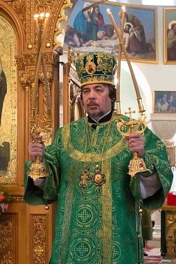 По заамвонной молитве епископ Маркелл совершил литию по жертвам авиакатастрофы в Египте, а затем отслужил молебен небесным покровителям обители: прп. Иоанну Рыльскому и св. прав. Иоанну Кронштадтскому.