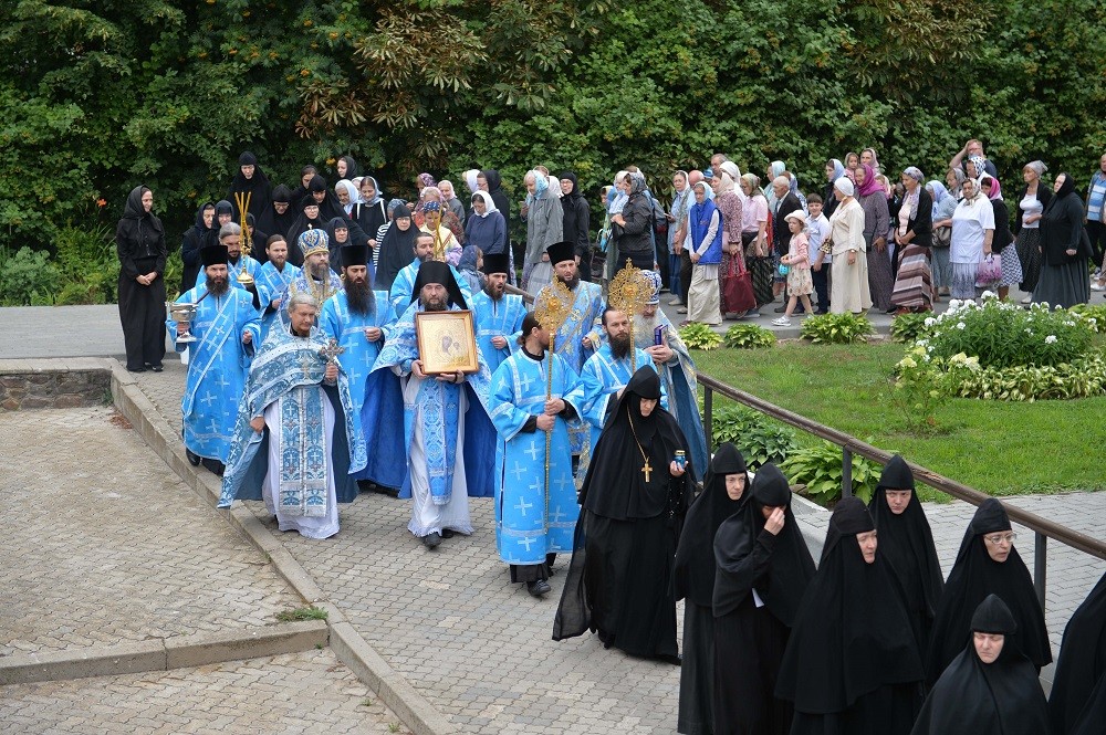 Накануне богослужение началось малой вечерней с пением акафиста чтимому образу Матери Божией и продолжилось всенощным бдением в Казанском соборе обители.