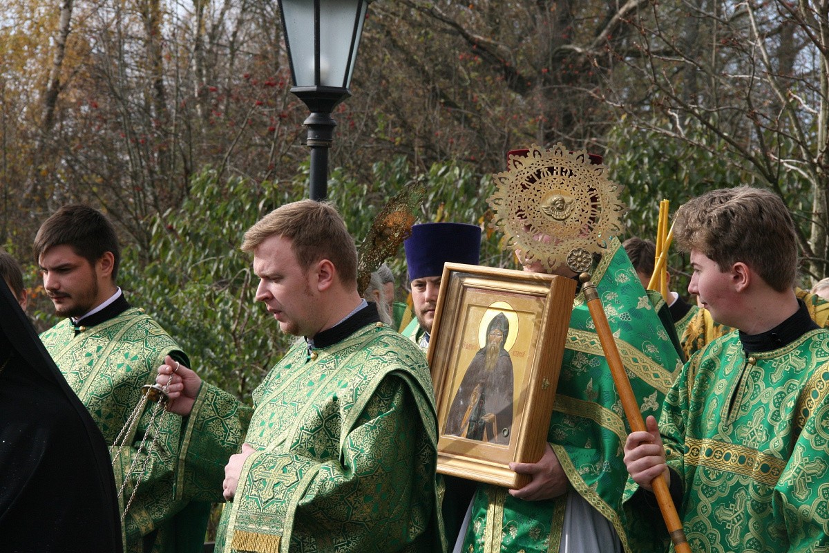 В память о празднике настоятельница обители преподнесла владыке Никите икону преподобного старца Амвросия, вышитую сестрами пустыни.