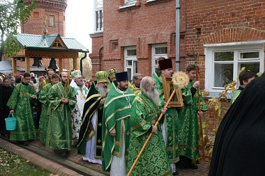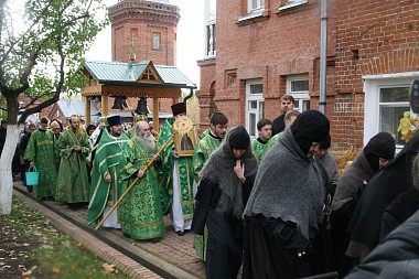 Затем Его Преосвященство поздравил настоятельницу монастыря игумению Сергию (Щербакову), всех сестер и паломников с престольным праздником.