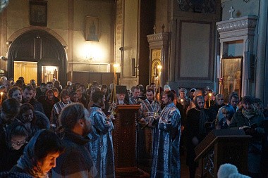 За богослужением молились многочисленные прихожане и благочестивые паломники, в благоговейной тишине внимая словам покаянных молитвословий первой седмицы Великого поста.