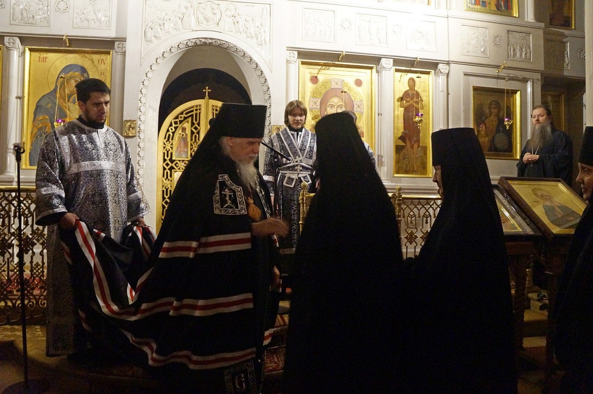 Владыка Пантелеимон совершил в монастырском храме Всех святых великое повечерие с чтением Великого покаянного канона прп. Андрея Критского.