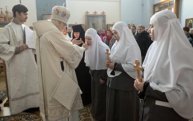«Надеюсь, что наши дорогие сестры, которые уже здесь подвизаются и являют дела любви на разных послушаниях, сегодня воспримут особый дар Божий через посвящение, через принятие Святых Таин, через благословение Великой княгини преподобномученицы Елисаветы и будут в большей степени трудиться, не жалея себя, чтобы послужить Богу и ближним. В этой святой обители преподобномученица Елисавета пребывает частичкой своих мощей, своими молитвами, своим духом, своим уставом и чином, который мы сейчас совершали. Она покрывает наши немощи, помогает в трудностях, привлекает любовью наши сердца к источнику любви – к Господу Богу и Спасителю нашему».