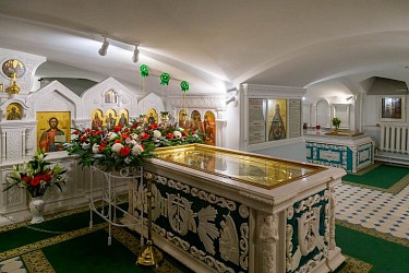 По прибытии в монастырь владыка спустился в храм-усыпальницу, где вознес молитву у гробницы святого праведного Иоанна Кронштадтского.