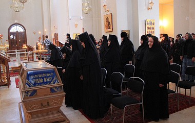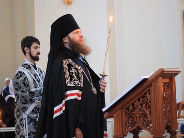 Его Преосвященству сослужили клирики Кресто-Воздвиженской Иерусалимской обители.