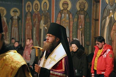 Вечером 14 января 2017 года наместник Новоспасского ставропигиального мужского монастыря епископ Воскресенский Савва совершил всенощное бдение в Покровском храме обители в сослужении братии в священном сане.
