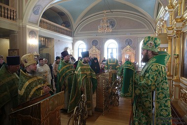 Его Преосвященству сослужили: епископ Ванинский и Переяславский Савватий; клирик монастыря митрофорный протоиерей Николай Сухов; председатель Комиссии по образованию и катехизации викариатства Новых территорий г. Москвы протоиерей Сергий Махонин, настоятель Смоленской часовни в дер. Елизарово (приписной к Свято-Духовскому храму пос. Первомайского); благочинный Одигитриевского округа иерей Петр Панов; клирик храма Казанской иконы Божией Матери в дер. Пучково иерей Олег Гаджиев.