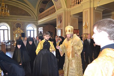 Преосвященнейший владыка поздравил игумению Фаину и сестер обители с новой инокиней и пожелал ей духовного преуспевания и совершенствования через добродетели послушания и смирения.