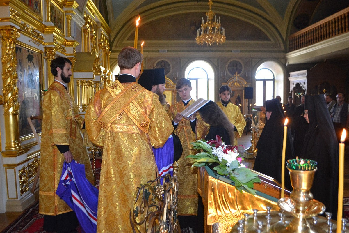 Перед началом всенощного бдения владыка Савва совершил иноческий постриг одной из насельниц обители. При постриге постриженнице было дано имя Бландина в честь мученицы Бландины Лионской, включенной в месяцеслов Русской Православной Церкви 9 марта 2017 года решением Священного Синода Русской Православной Церкви (журнал № 14) с определением дня памяти 2/15 июня.