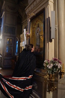 Владыка Серафим в монастырском храме Всех святых совершил великое повечерие с чтением Великого покаянного канона прп. Андрея Критского.