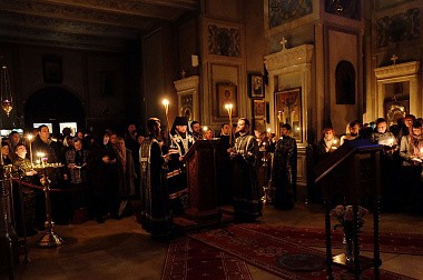 Его Преосвященство совершил великое повечерие с чтением Великого покаянного канона прп. Андрея Критского. В богослужении участвовали клирики обители.
