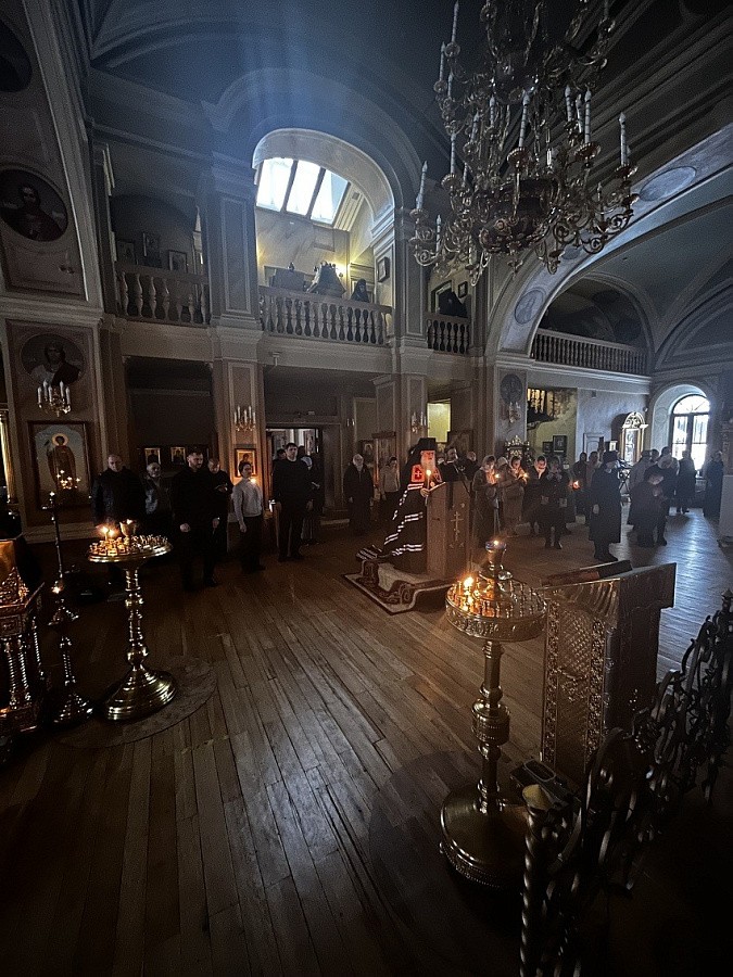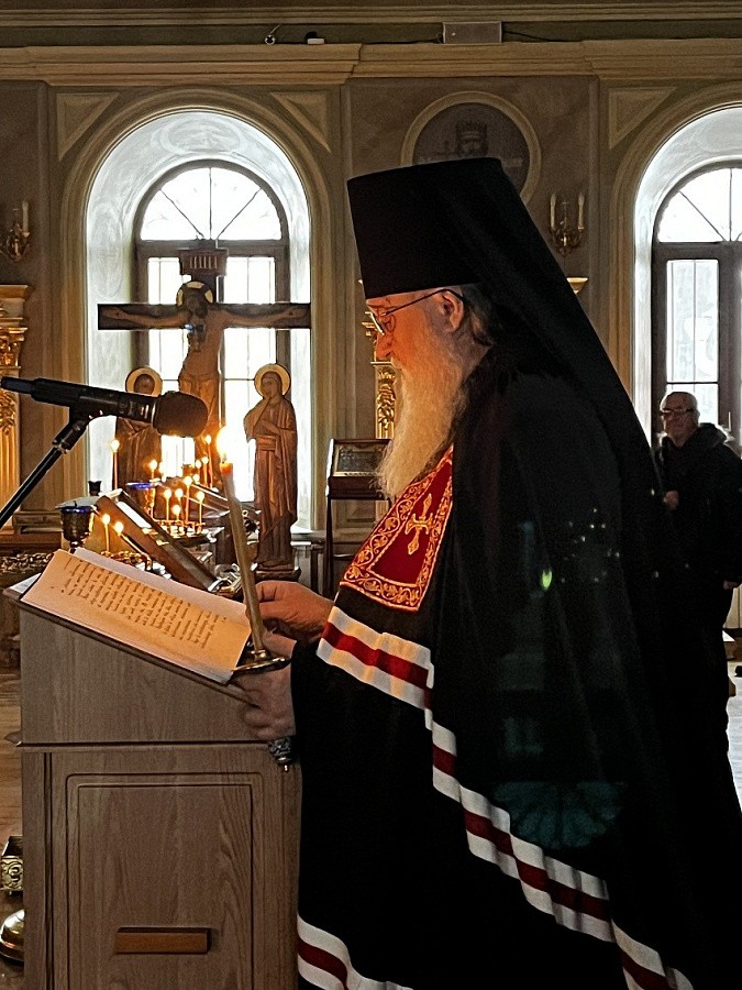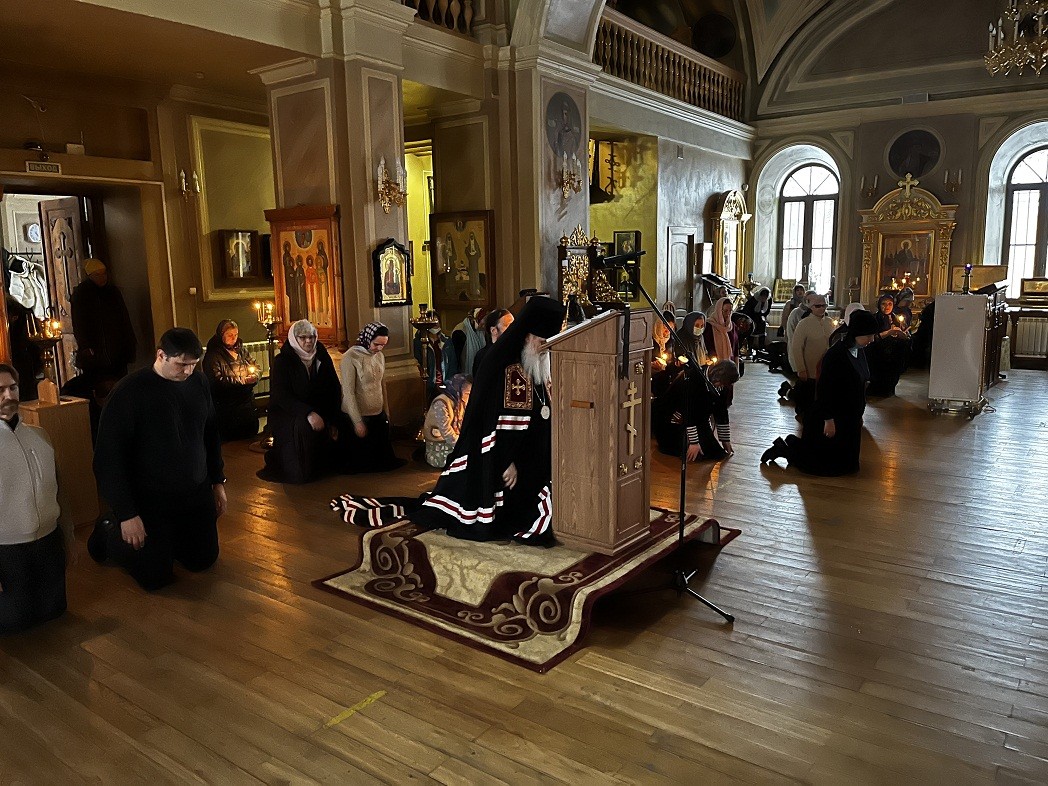 Вечером 8 марта 2022 года, во вторник первой седмицы Великого поста, епископ Серпуховской Роман, викарий Святейшего Патриарха Московского и всея Руси, совершил великое повечерие с чтением Великого покаянного канона прп. Андрея Критского в Троице-Одигитриевском ставропигиальном женском монастыре Зосимова пустынь.