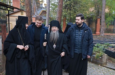 В завершение владыка с матушкой игуменией и сестрами посетили лесной участок, где завершается возведение деревянного храма во имя преподобного Силуана Афонского и исторический участок подворья с храмом преподобной Марии Египетской.