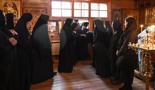 За Литургией молились заместитель председателя Синодального отдела по монастырям и монашеству, настоятельница Зачатьевского ставропигиального женского монастыря игумения Иулиания (Каледа), настоятельница Богородице-Рождественского ставропигиального женского монастыря игумения Викторина (Перминова), прихожане и гости обители.