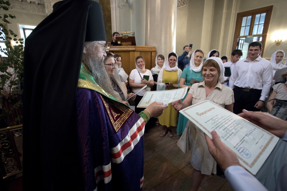 После молебна епископ Солнечногорский Алексий, наместник Данилова монастыря вручил дипломы 4 регентам и свидетельства 40 певчим церковного хора.