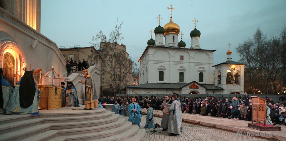 По традиции Сретенского монастыря Литургия в среду совершается вечером, в 18 часов.