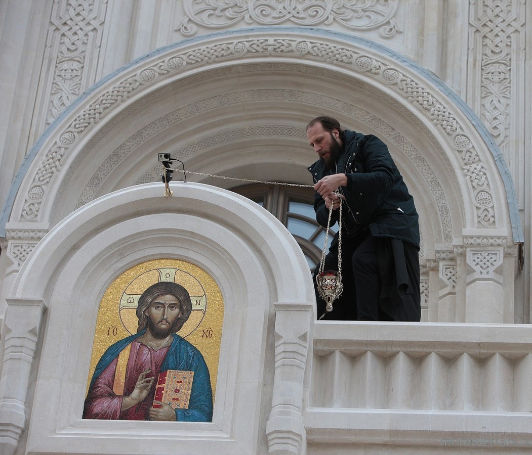 Я хотел бы поблагодарить от лица всей братии всех вас за сегодняшнюю молитву. Поблагодарить братию нашей обители за труды по строительству и устройству этого храма. Выразить слова признательности всем строителям, архитекторам, замечательным художникам, инженерам. Всех-всех поблагодарить за то, что вашими трудами и молитвами и именно сегодня мы смогли совершить такую удивительную службу.