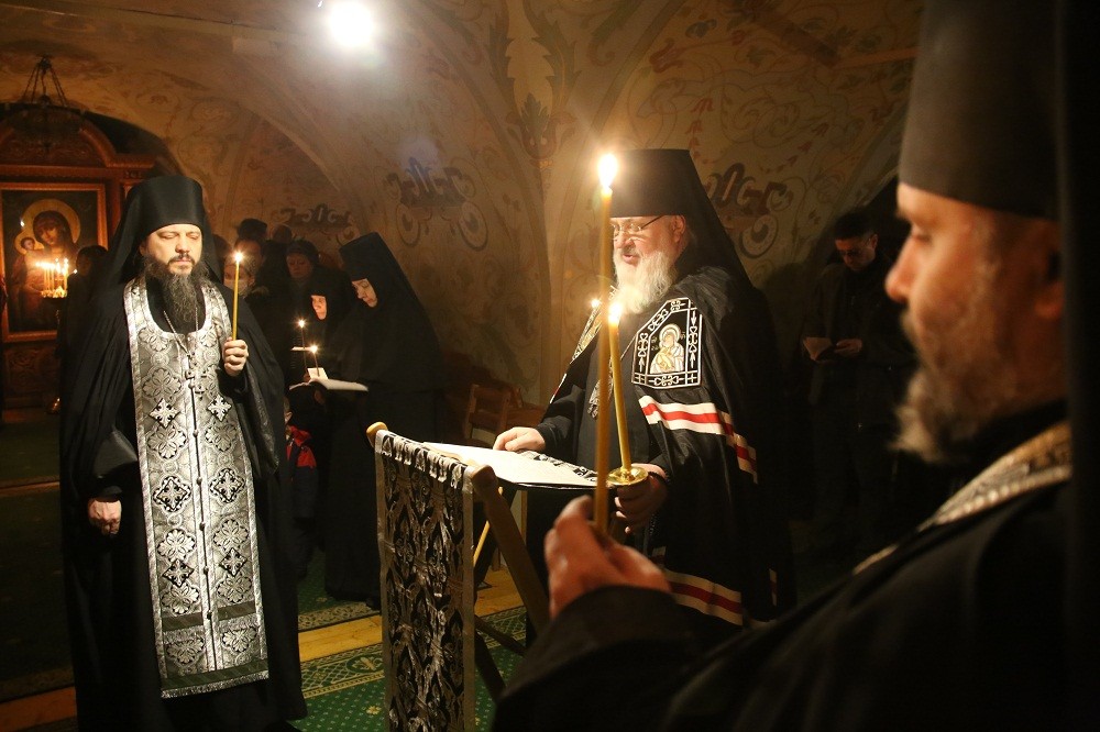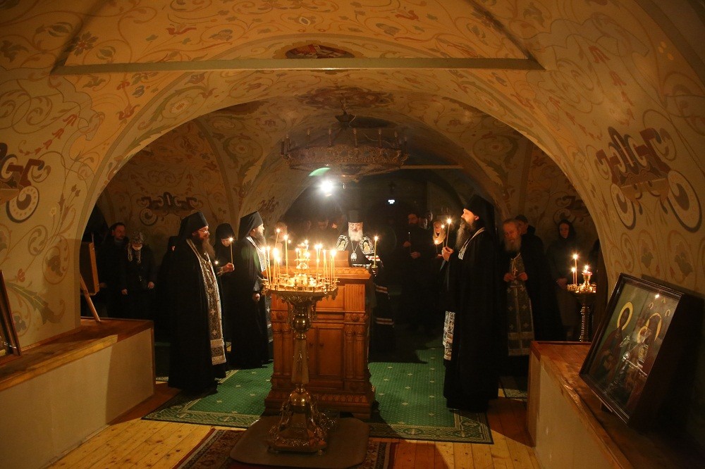 В храме во имя преподобного Иосифа Волоцкого владыка в сослужении священноиноков обители совершил повечерие с чтением Великого канона преподобного Андрея Критского.