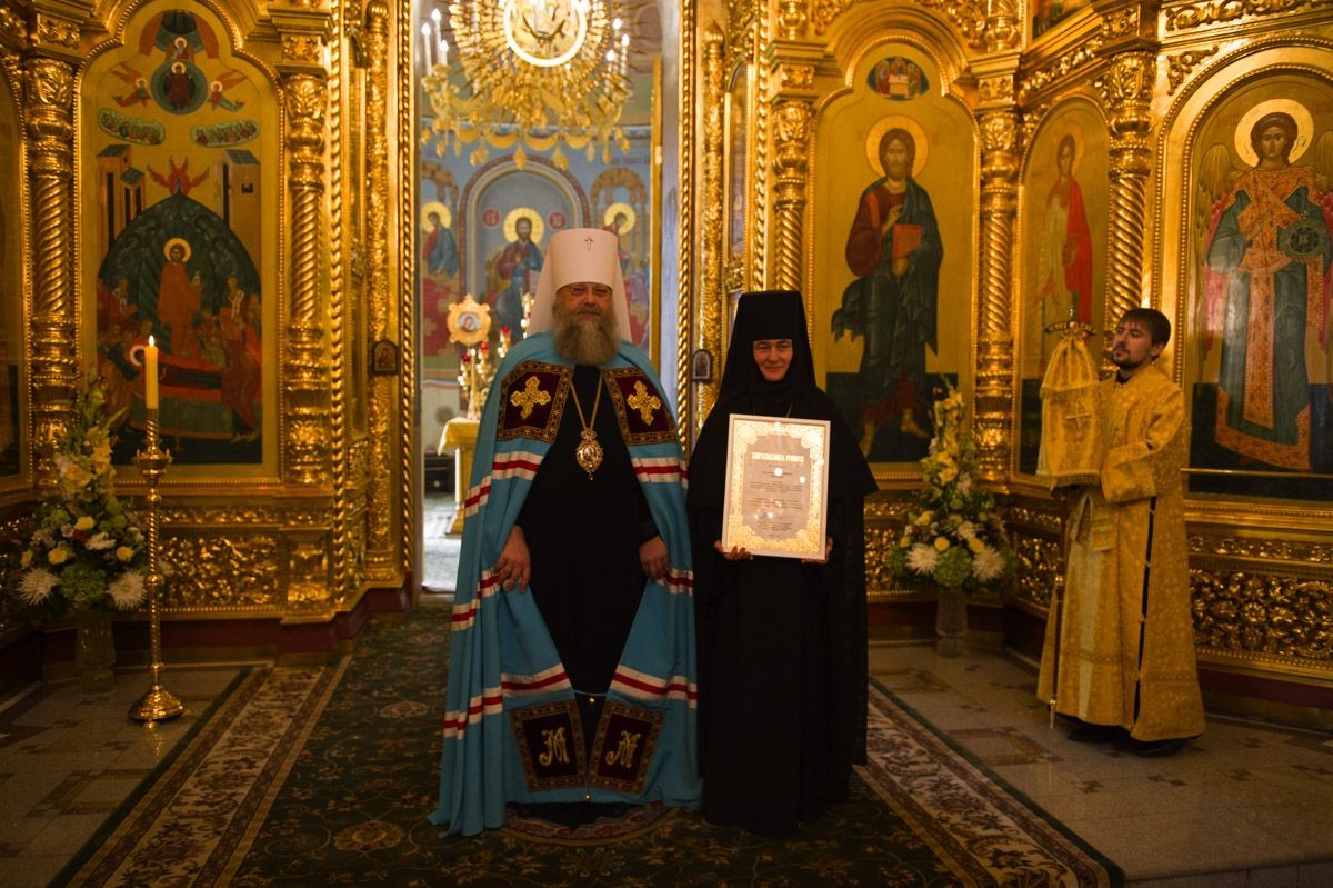 За труды на ниве православного образования и духовно-нравственного просвещения и в связи с 20-летием Православной гимназии в Троице-Лыкове города Москвы председатель Синодального отдела наградил Благословенной грамотой настоятельницу Покровского ставропигиального женского монастыря игумению Феофанию (Мискину), а также учителей, трудящихся в гимназии.