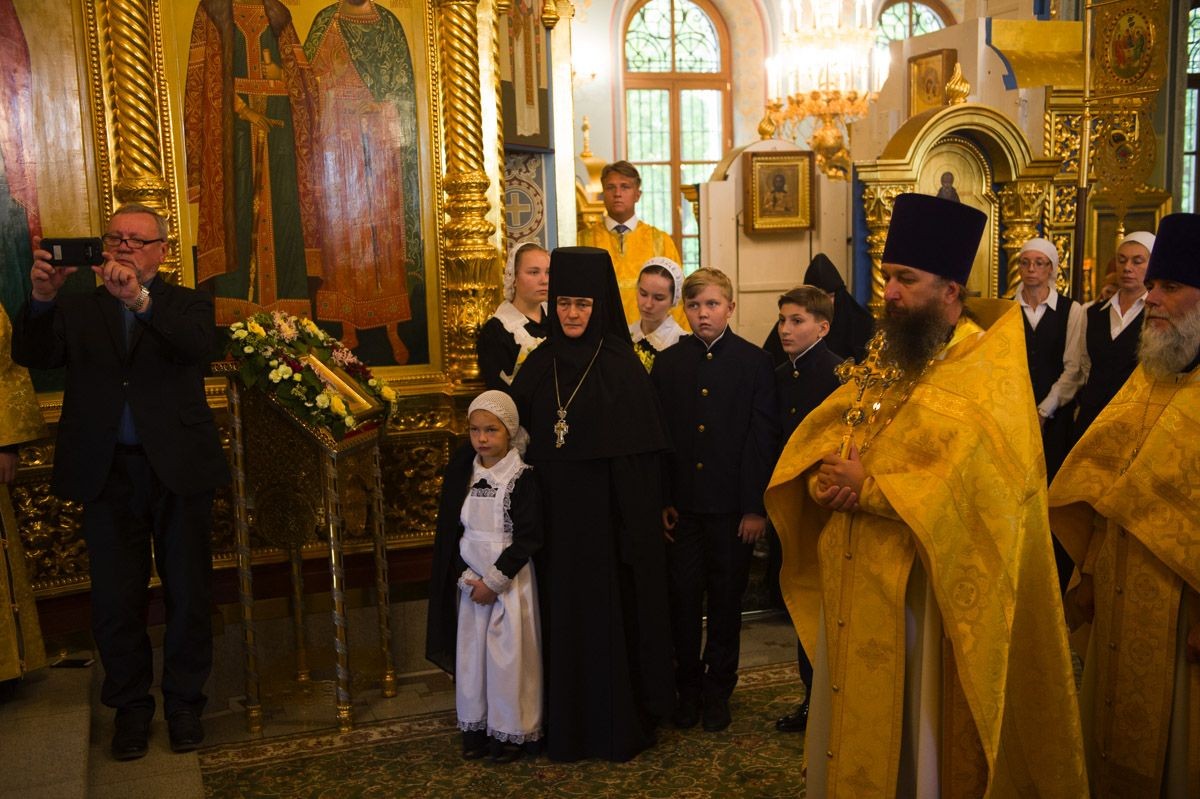 За Божественной литургией молились директор гимназии настоятельница Покровского ставропигиального женского монастыря игумения Феофания (Мискина), преподаватели, учащиеся и их родители.